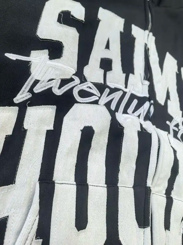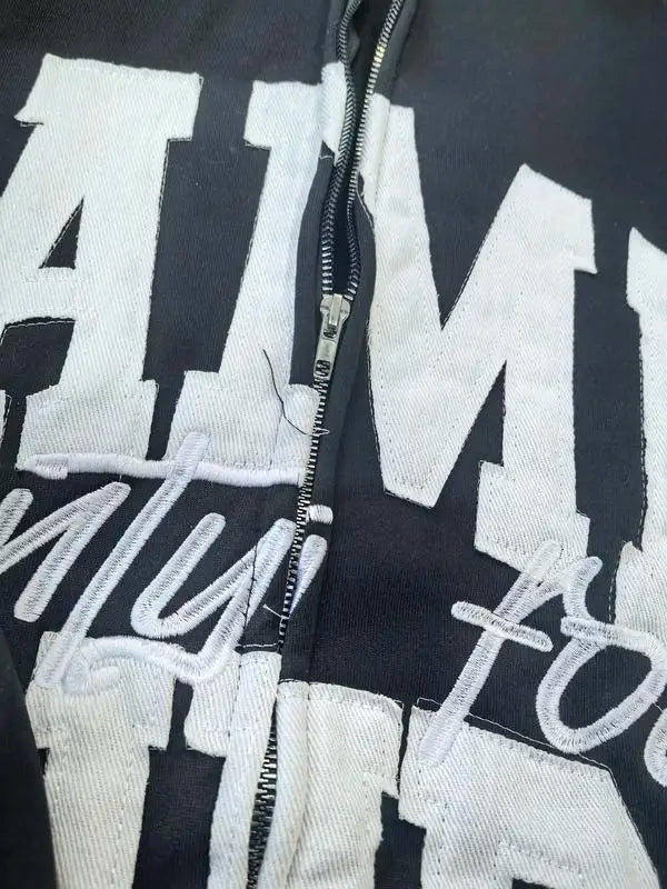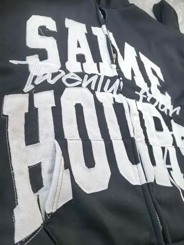 Lettering Embroidered Hoodie Zip Up Jacket Streetwear Sweatshirt